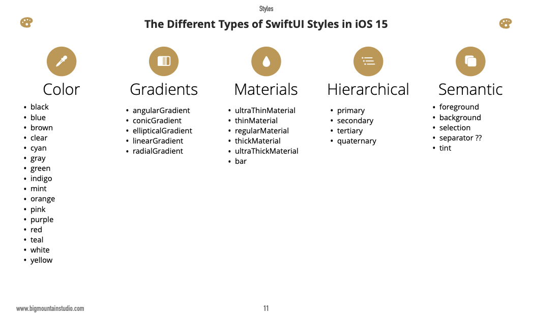 There are 5 categories of styles used in SwiftUI: