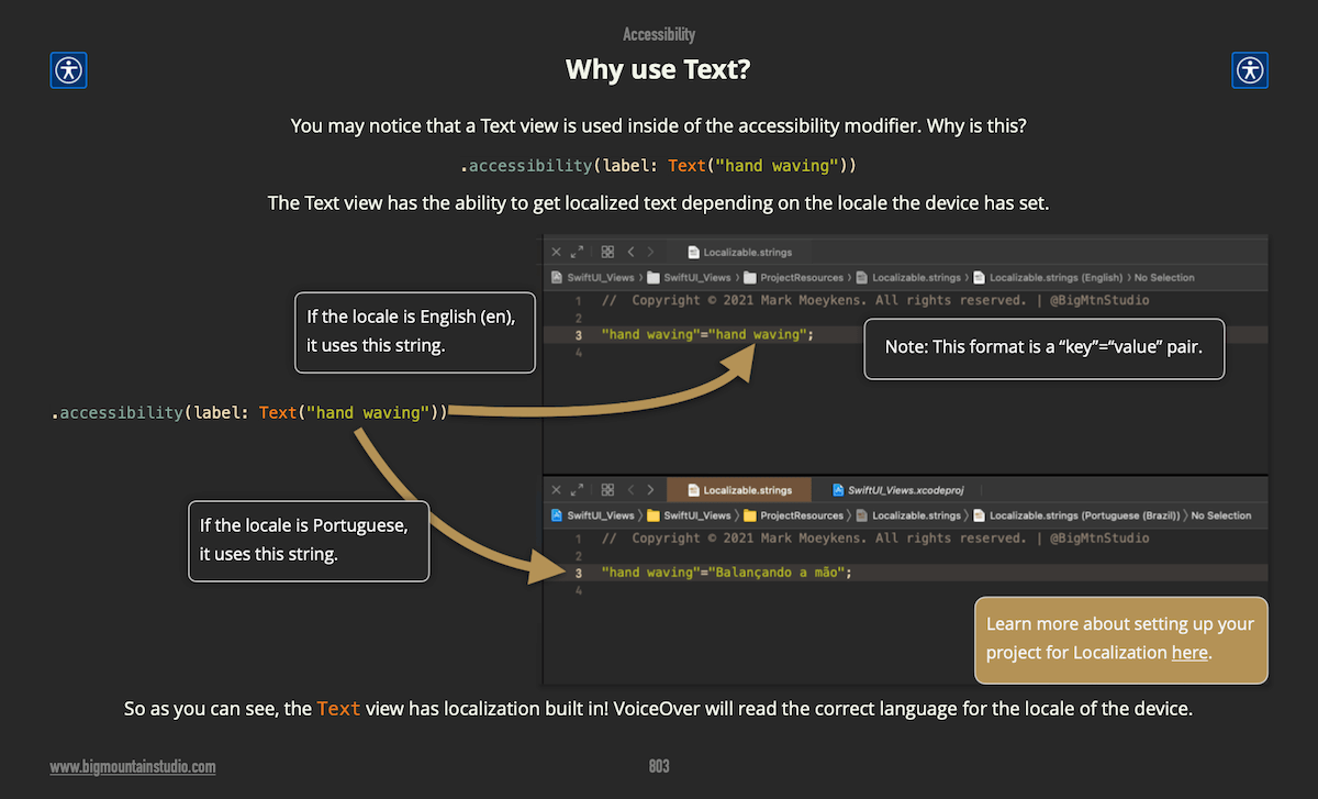 The accessibility modifier uses Text views to get the right language.