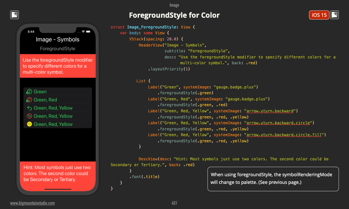 Use foregroundStyle to specify different colors for a multi-color symbol.