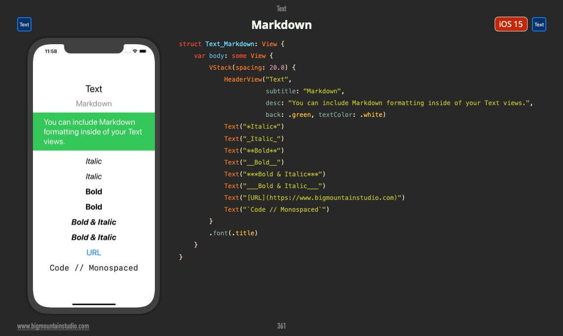 You can now use Markdown to format text within the Text view.
