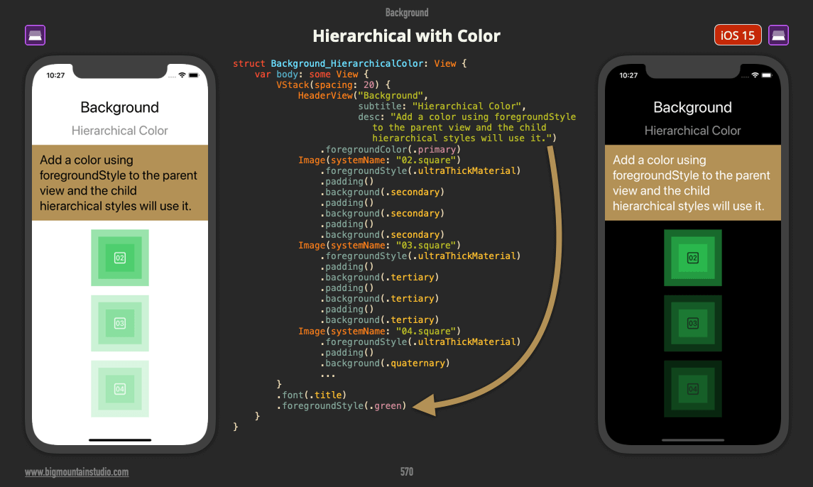 Hierarchical styles can also take on a color by specifying a foregroundStyle (iOS 15 modifier).