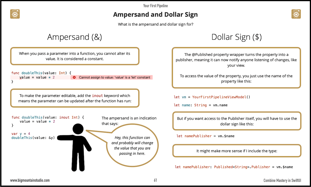 You may have noticed from the previous post this use of an ampersand (&). In the #SwiftLang, it allows you to pass in a value that the function can then edit. (Normally you can do this.) Read this page from the #Combine book to learn more or get the book: <your link>