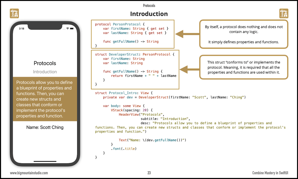Having an idea of how protocols work will enhance your understanding of #Combine. Even if you've never used protocols before, these simple examples should help you get it. Mark relates everything you learn back to #SwiftUI and Combine to further progress your understanding.