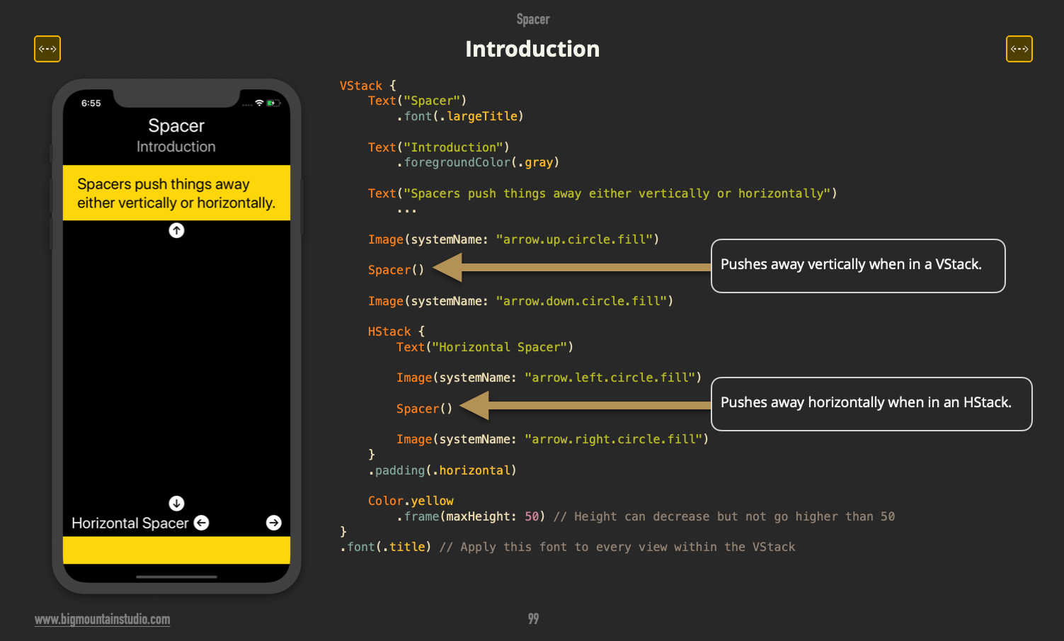 Many views in #SwiftUI will gravitate towards the center of the screen. If you want to push them out then the Spacer is your solution. Discover more creative ways to use the Spacer in this book: <your link>