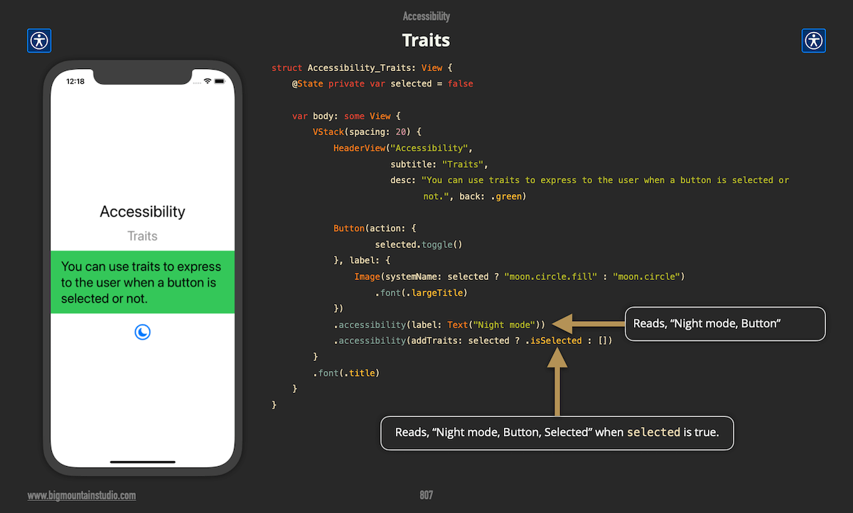 Add traits to have voiceover give more indication about the state of a control.